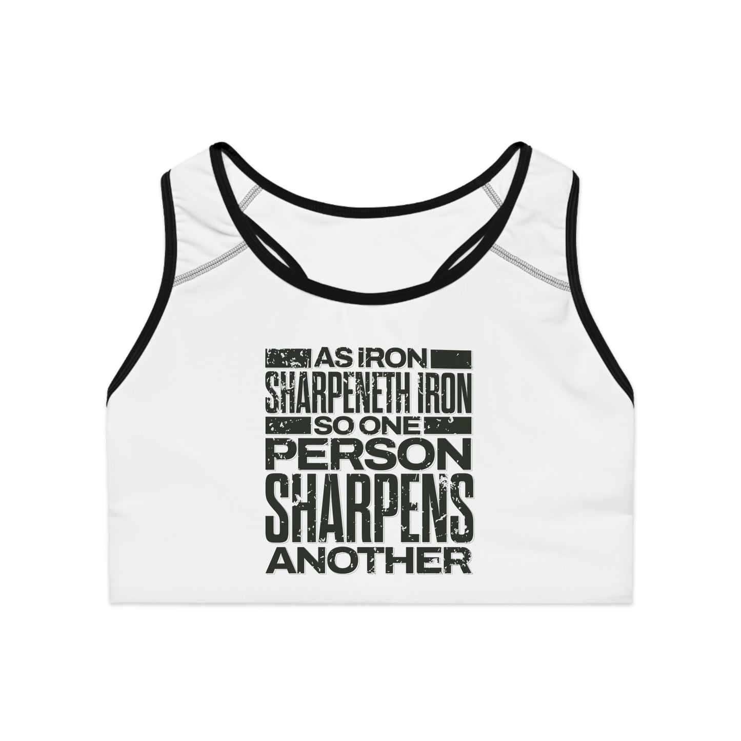 "As Iron Sharpeneth Iron So One Person Sharpens Another" Unisex Sports Bra