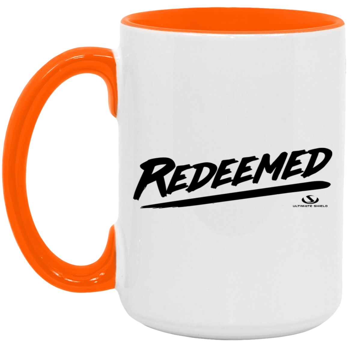 - High quality ceramic mug with two-tone rim, interior, & handle