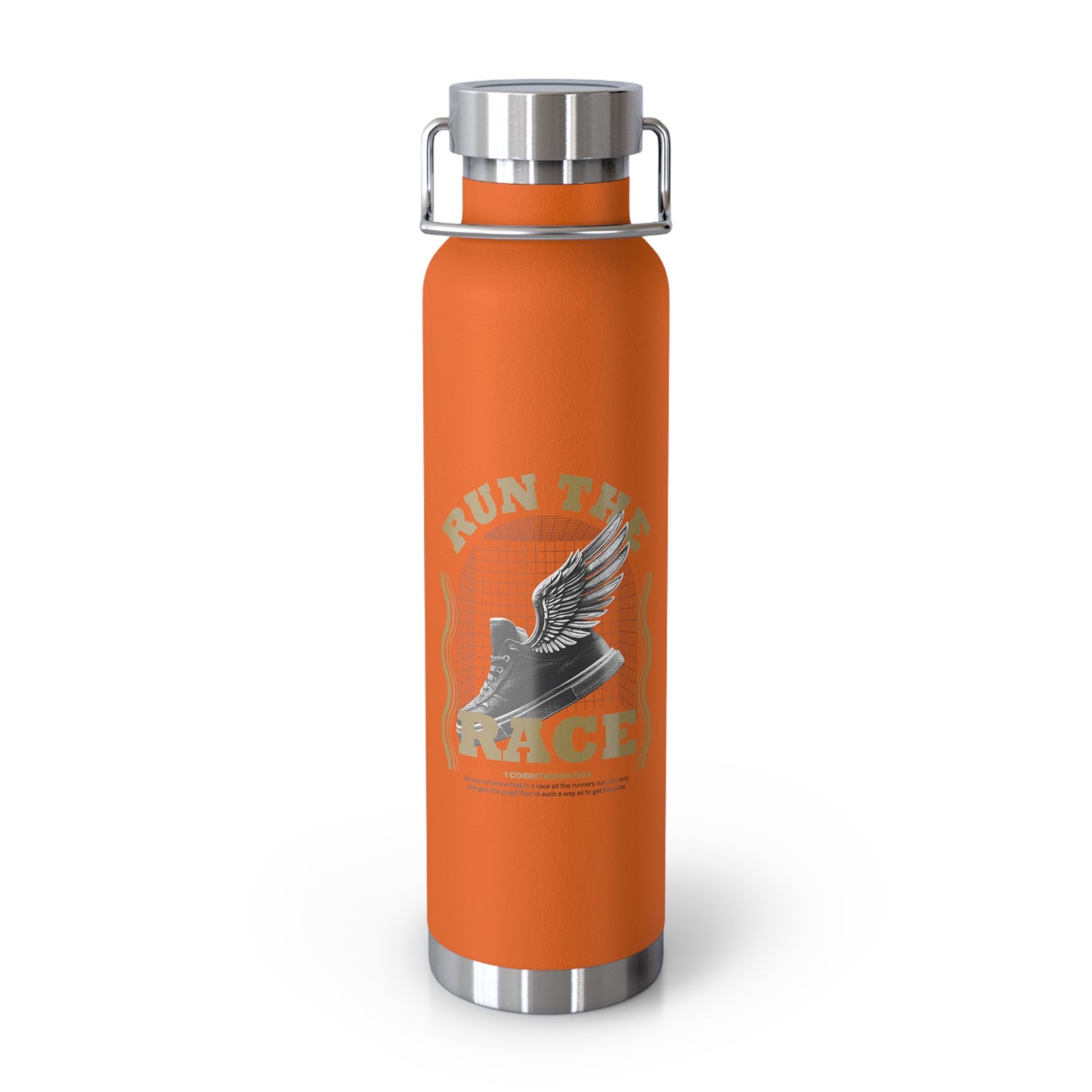 "Run The Race" Unisex Inspirational Copper Vacuum Insulated Bottle - 22oz