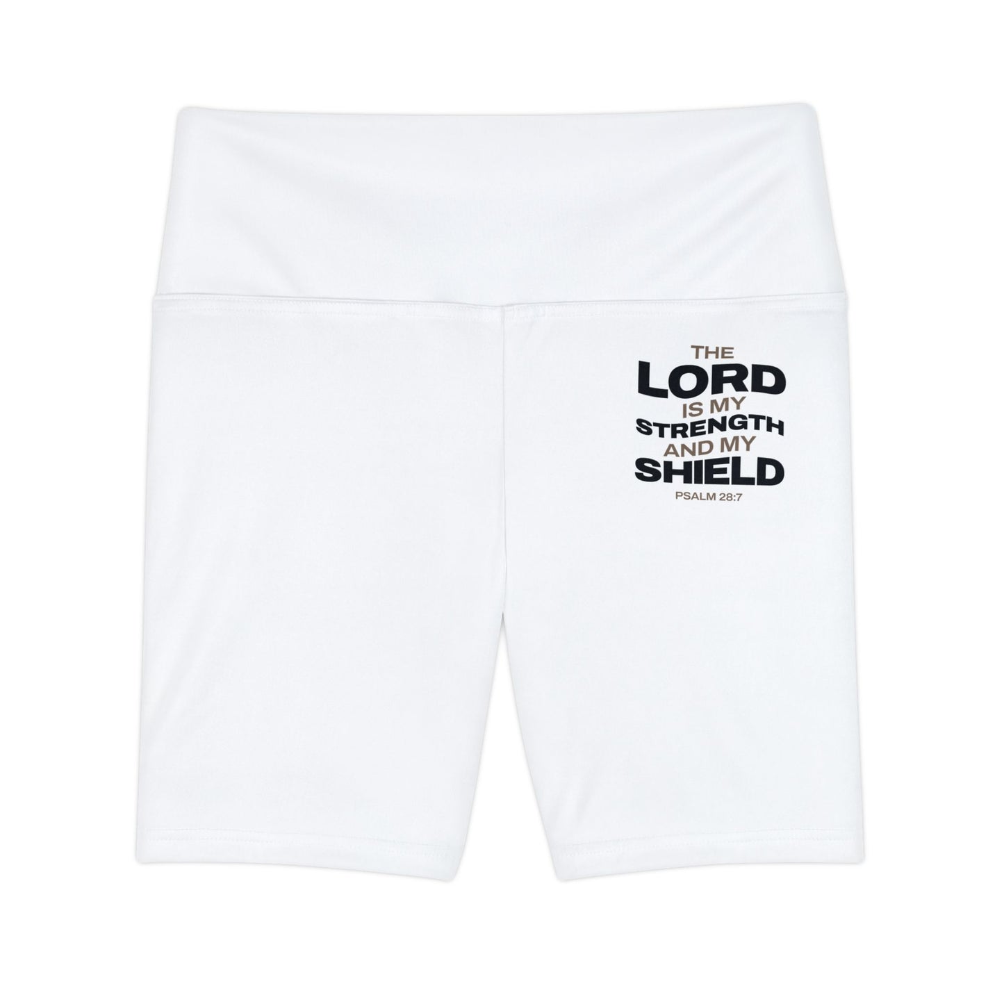 "The Lord Is My Strength and My Shield Psalm 28:7" Unisex Workout Shorts